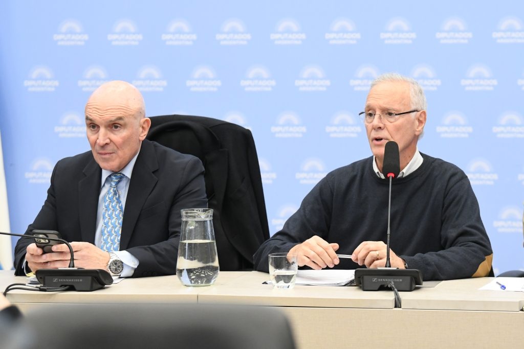 José Luis Espert y Daniel Gollán, presidentes de las comisiones de Presupuesto y Ciencia, respectivamente. El primero tuvo que convocar a la comisión después de que la Cámara lo obligara a hacerlo. Con este dictamen el proyecto que declara la emergencia del sistema nacional de ciencia tecnología e innovación quedó en condiciones de ser tratado en una sesión para su media sanción.