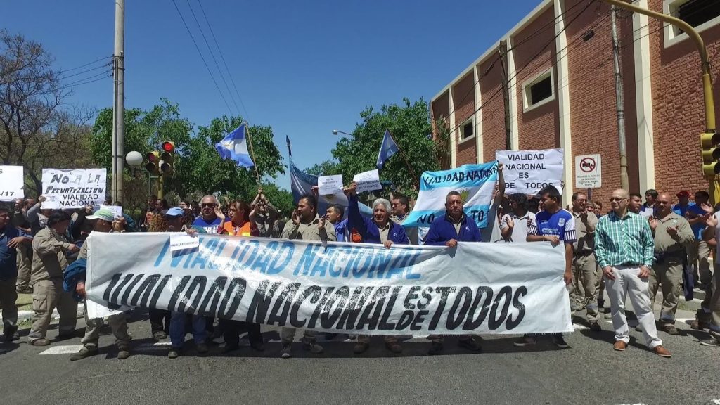 Los empleados aseguran que están en riesgo unos 5 mil puestos de trabajo ante el posible cierre del organismo. “Tenemos un gobierno que nos congela el salario y se jacta y juega con la guita”, señaló Graciela Aleña, secretaria general del Sindicato de Trabajadores Viales y Afines (STVyA), durante la manifestación.